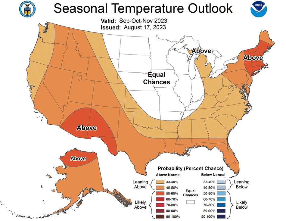 “We’re forecasting above-normal temperatures in September and below-normal temperatures in October and November for the bulk of the Corn Belt. East Coast and southern states will be fairly wet.”