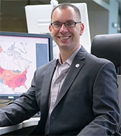Matthew Rosecrans is a meteorologist at NOAA’s Climate Prediction Center. His team develops new scientific methods or incorporates scientific methods developed by research and academic partners to create forecasts from two weeks to two years ahead. He’s also involved with hurricane, temperature and precipitation outlooks, and drought forecasting.