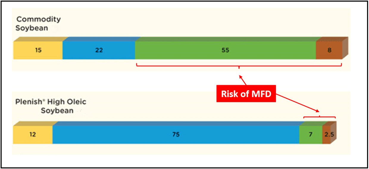 Plenish soybeans, with 75% oleic acid and only 9.5% polyunsaturated fatty acids (PUFAs, including linoleic), compared to conventional soybeans with 22% oleic acid and 63% PUFAs, represent a groundbreaking innovation in dairy nutrition, allowing for a shift in the way nutritionists formulate rations.