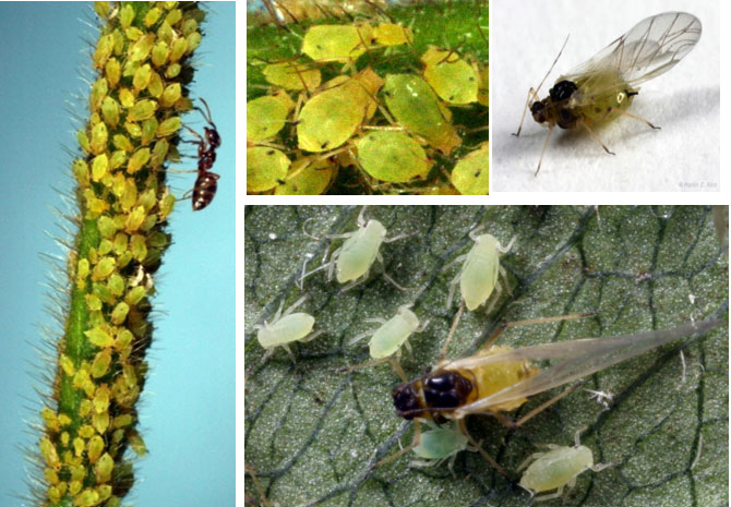 Photos - Soybean aphid nymphs and adults.