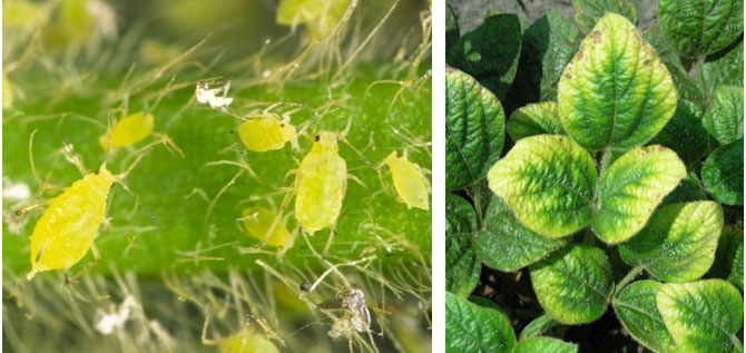 Aphid-infested soybean leaves.