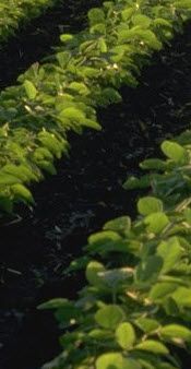 Soybeans germinate when the seed absorbs half its weight in water. The radical (primary root) emerges first. The hypocotyl (stem) follows soon, growing upward and pulling the cotyledons ("seed leaves") with it.
